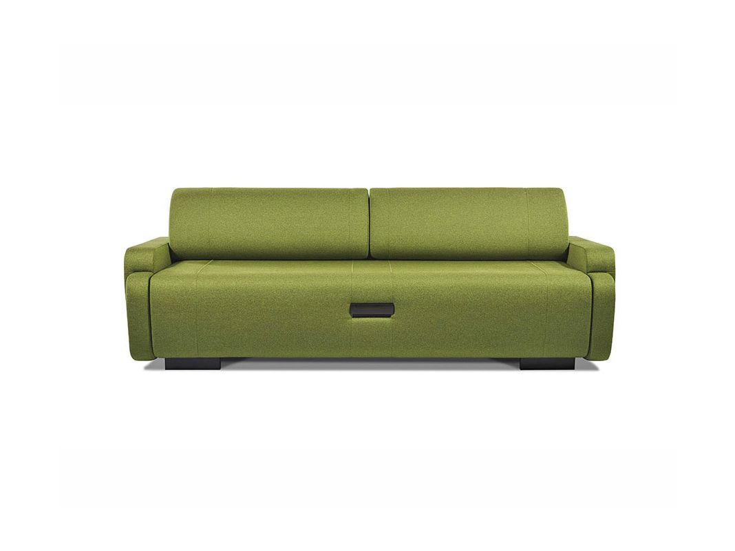 Стильный диван-кровать. Благодаря низким подушкам спинки, в основании которых многослойный пенополиуретан, на диване комфортно сидеть, а удобная ручка облегчает трансформацию. Спальное место ровное и достаточно просторное — 194×148 см. Вместительный бельевой ящик идеально подходит для хранения спальных принадлежностей.