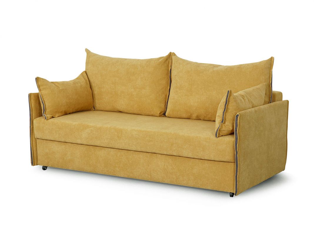 Особенность дивана – тонкие подлокотники. Такое решение призвано экономить жилое пространство. Обладая скромными габаритными размерами, диван располагает полноценным спальным местом для двоих. Комфортность посадки и спального места обеспечиваются объёмными подушками спинки и современным настилочным материалом - ППУ средней плотности.
