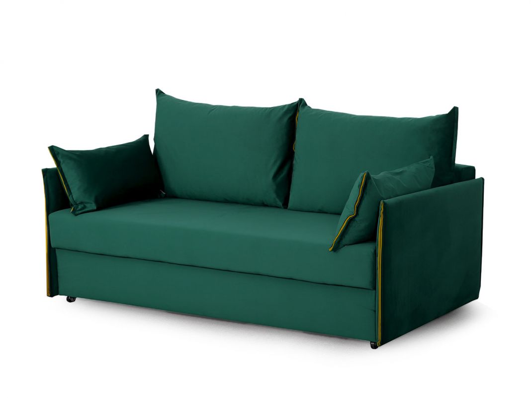 Особенность дивана – тонкие подлокотники. Такое решение призвано экономить жилое пространство. Обладая скромными габаритными размерами, диван располагает полноценным спальным местом для двоих. Комфортность посадки и спального места обеспечиваются объёмными подушками спинки и современным настилочным материалом - ППУ средней плотности.