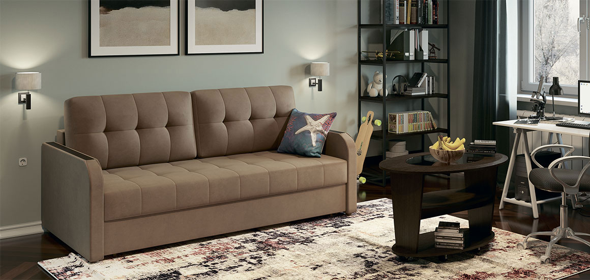 Модель Виктория прекрасно подойдет для любой площади квартиры. Благодаря матрасу Супер комфорт на таком диване не только удобно сидеть, но и можно с удовольствием отдохнуть: матрас с независимым пружинным блоком идеально подходит для полноценного сна. В основании дивана расположен вместительный бельевой ящик.