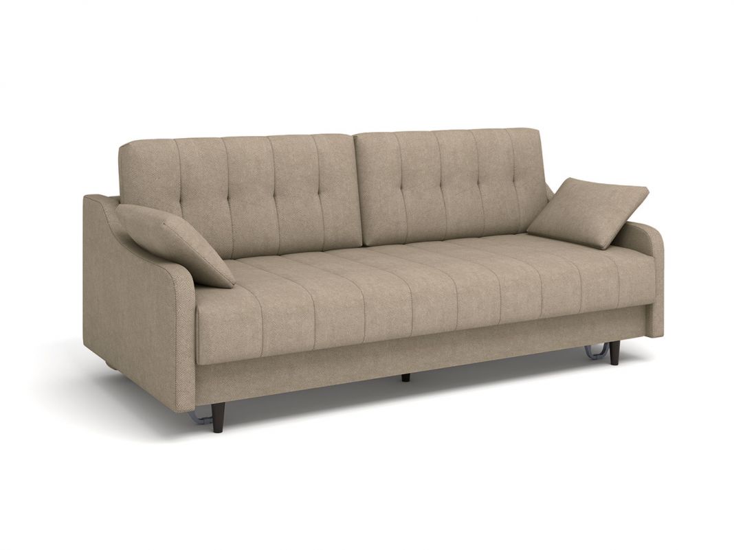 Диван Женева выполнен в модном стиле mid century. Отличительной особенностью модели являются фигурные подлокотники, которые в сочетании с минимализмом прямых форм сиденья и спинки, создают целостный современный образ. Высокие опоры придают дивану легкости и облегчают процесс уборки: клиренс 10 см позволяет свободно маневрировать роботу-пылесосу. Дополнительное преимущество - задняя спинка в основной ткани, что дает возможность размещать диван не только у стены, но и в любом месте помещения. Особую прочность дивану придает металлический каркас из конструкционной стали, а простой и надежный механизм трансформации - пантограф - обеспечивает долгий срок службы.
