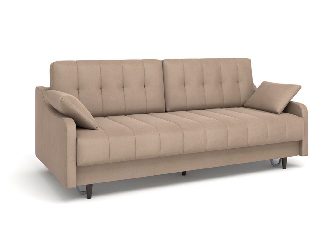 Диван Женева выполнен в модном стиле mid century. Отличительной особенностью модели являются фигурные подлокотники, которые в сочетании с минимализмом прямых форм сиденья и спинки, создают целостный современный образ. Высокие опоры придают дивану легкости и облегчают процесс уборки: клиренс 10 см позволяет свободно маневрировать роботу-пылесосу. Дополнительное преимущество - задняя спинка в основной ткани, что дает возможность размещать диван не только у стены, но и в любом месте помещения. Особую прочность дивану придает металлический каркас из конструкционной стали, а простой и надежный механизм трансформации - пантограф - обеспечивает долгий срок службы.