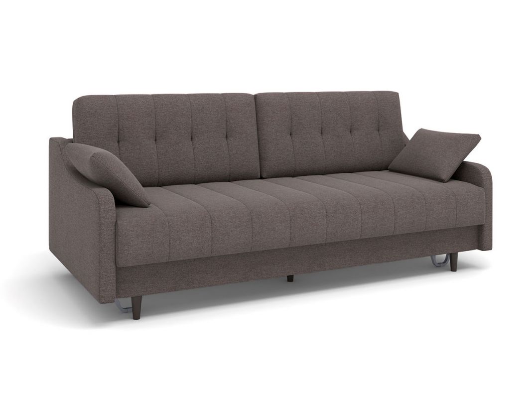 Диван Женева выполнен в модном стиле mid century. Отличительной особенностью модели являются фигурные подлокотники, которые в сочетании с минимализмом прямых форм сиденья и спинки, создают целостный современный образ. Высокие опоры придают дивану легкости и облегчают процесс уборки: клиренс 10 см позволяет свободно маневрировать роботу-пылесосу. Дополнительное преимущество - задняя спинка в основной ткани, что дает возможность размещать диван не только у стены, но и в любом месте помещения. Особую прочность дивану придает металлический каркас из конструкционной стали, а простой и надежный механизм трансформации - пантограф - обеспечивает долгий срок службы.