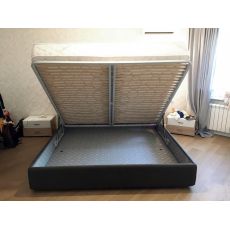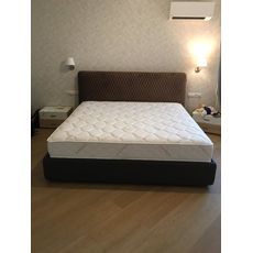 Стеганая ткань облицовки приятна на ощупь и вызывает самые положительные эмоции и ощущение уюта. Кровать оснащается механизмом подъема рамы, обеспечивающим доступ к отделению для хранения белья, и на выбор комплектуется двумя типами ортопедических решеток - «Комфорт» и «Премиум»