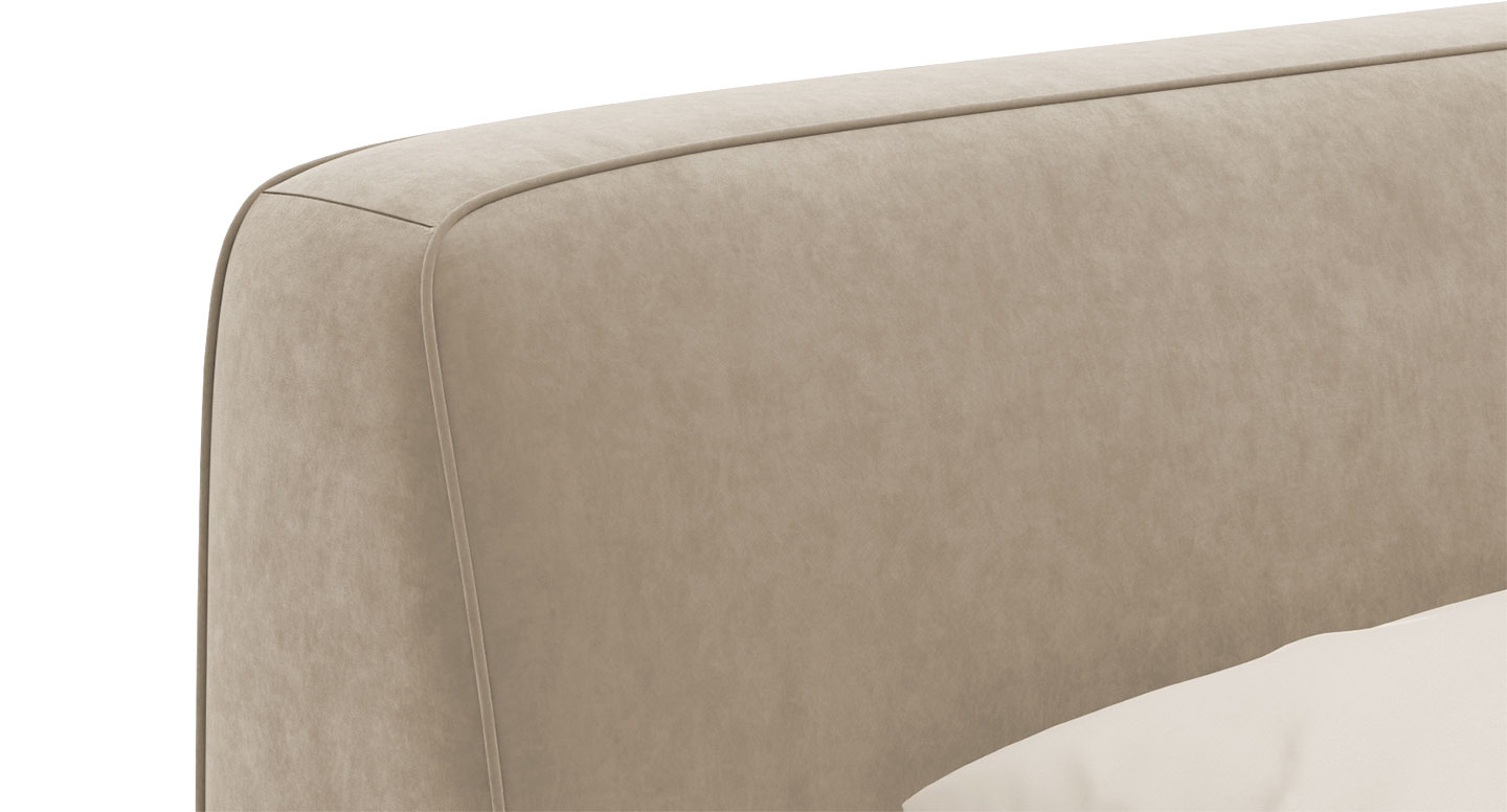 Стильная кровать, отражающая современный дух времени, несет в себе простоту форм и линий. Мягкое и низкое изголовье разработано с учетом эргономики, благодаря чему обеспечивается максимально расслабляющий отдых. Декоративный кант аккуратно подчеркивает плавные линии изголовья. Уникальный дизайн кровати позволяет идеально размещать ее в мансардной спальне или в квартире-студии.