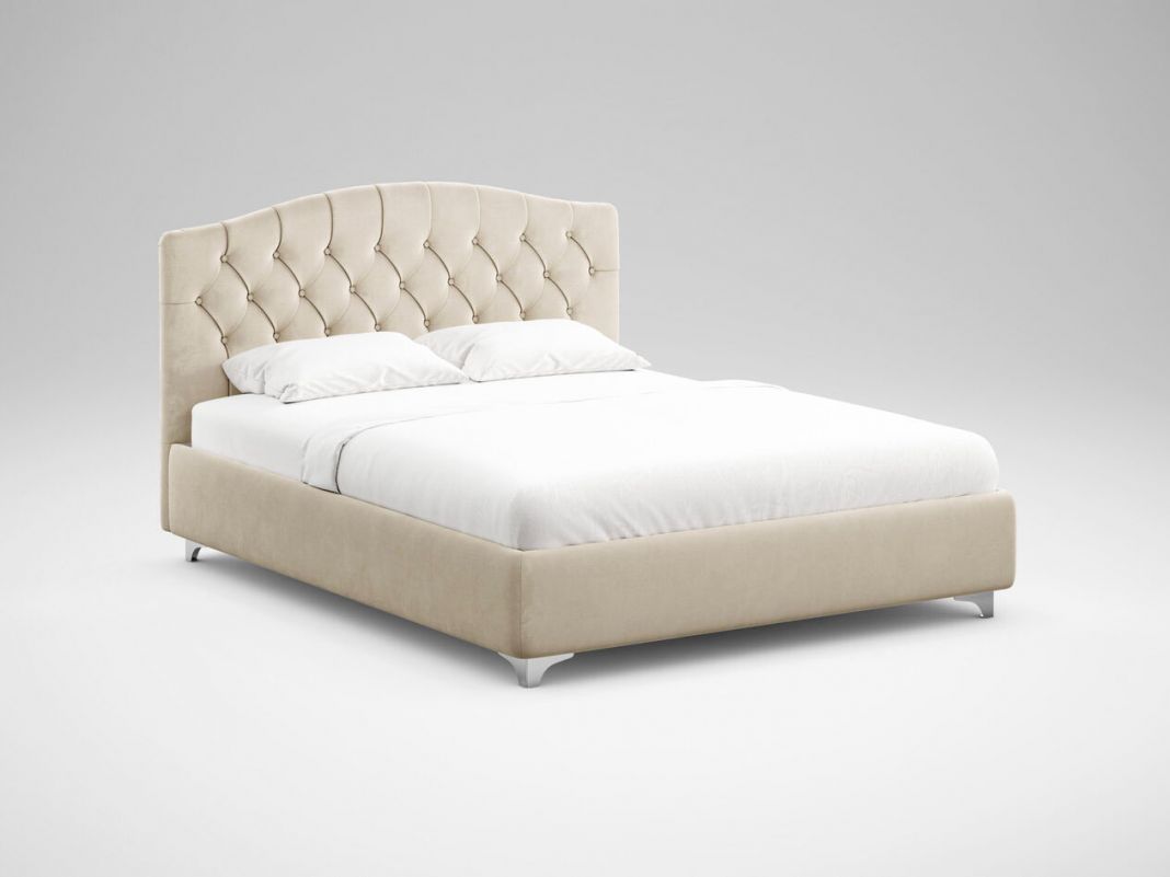 Изысканное объемное изголовье с каретной стяжкой — индивидуальная отличительная черта дизайна. Каретная стяжка придает кровати дорогой и благородный внешний вид, наделяя ее образ статусностью и величием. Нежный и утонченный образ кровати является главным украшением любого интерьера. Деликатность линий и объемность изголовья делают спальню воплощением уюта.