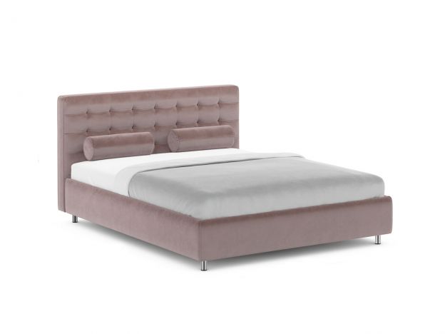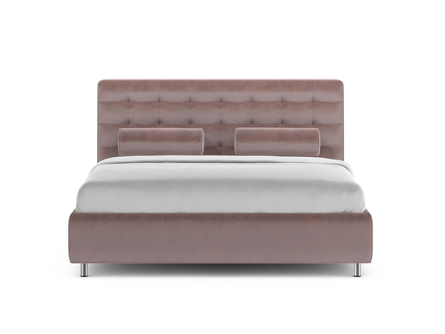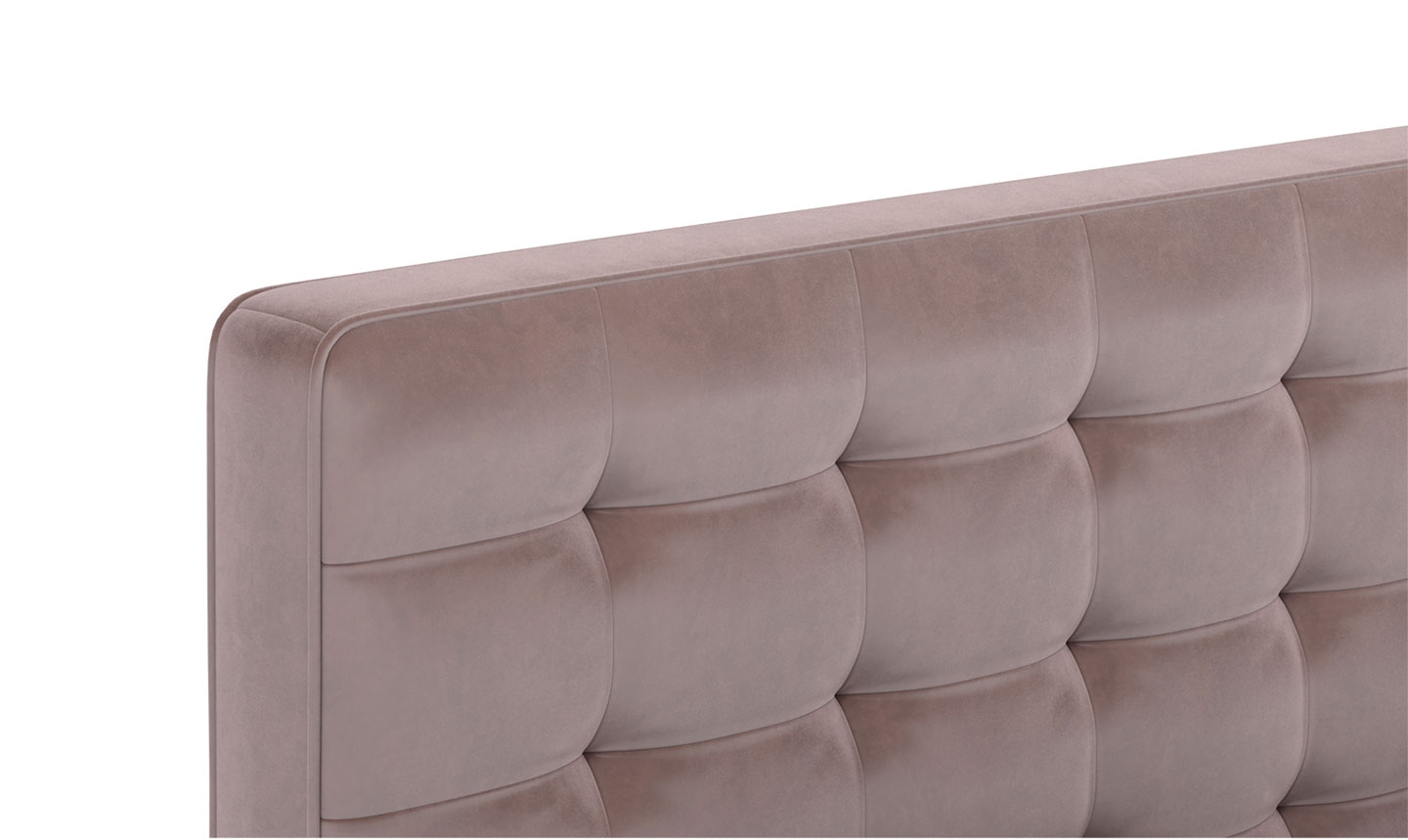 Дизайн наделен сбалансированными объемными формами, которые придают интерьеру мягкость и уют. Стежка в виде квадрата и кант на изголовье придают кровати особый шик. Шарм общей стилистике дизайна придают подушки-валики.