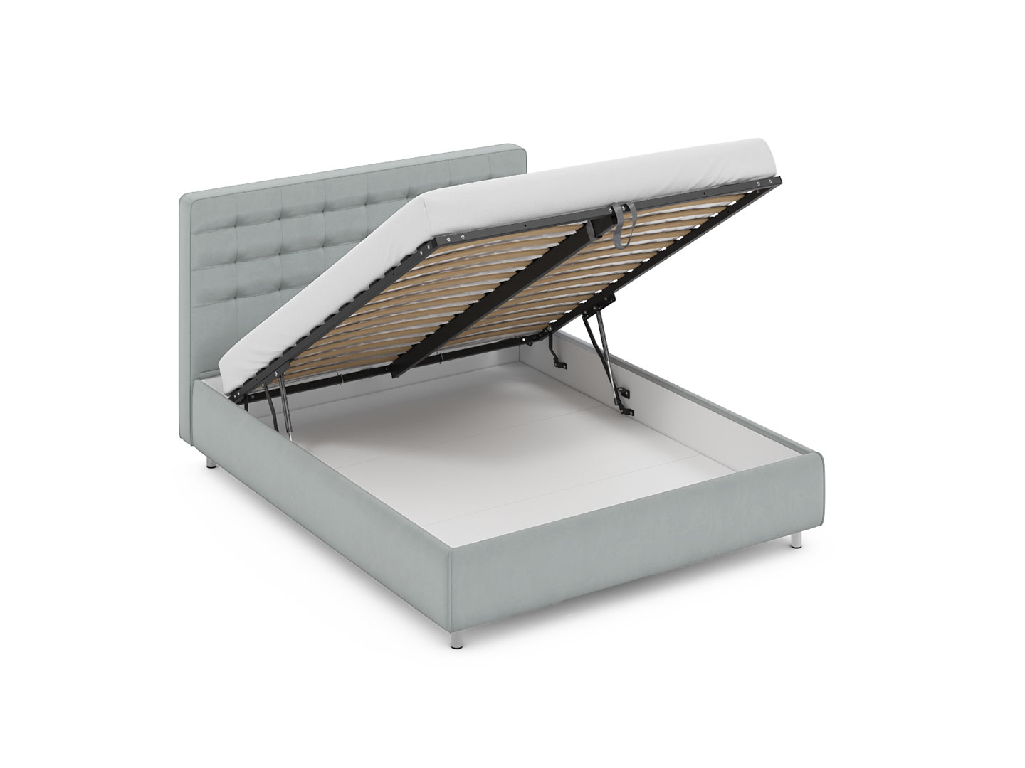 Вместительная емкость под кроватью без внутренних перегородок позволяет использовать для хранения вещей 100% пространства.