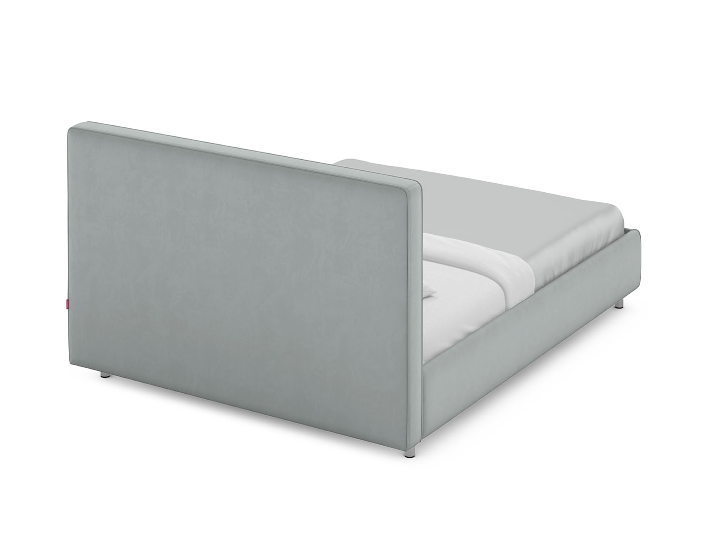 Спинка, выполненная в обивочной ткани, позволяет ставить кровать в центре комнаты и зонировать пространство.