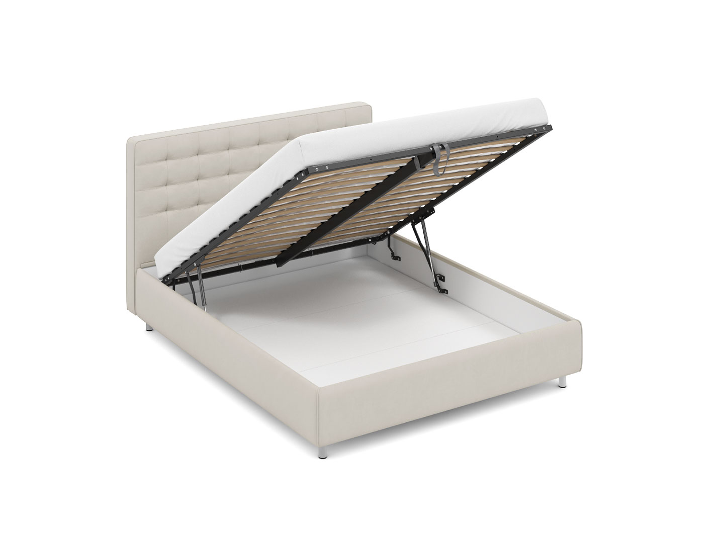 Вместительная емкость под кроватью без внутренних перегородок позволяет использовать для хранения вещей 100% пространства.