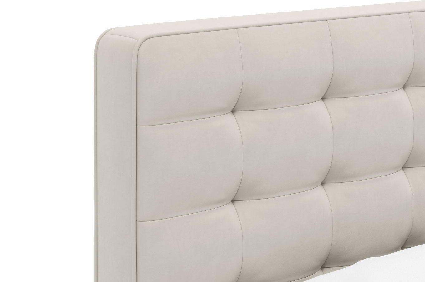 Дизайн наделен сбалансированными объемными формами, которые придают интерьеру мягкость и уют. Стежка в виде квадрата и кант на изголовье придают кровати особый шик. Шарм общей стилистике дизайна придают подушки-валики.