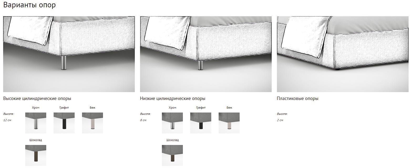 Цилиндрические опоры представлены в четырех цветах: Графит, Хром, Беж и Шоколад.
