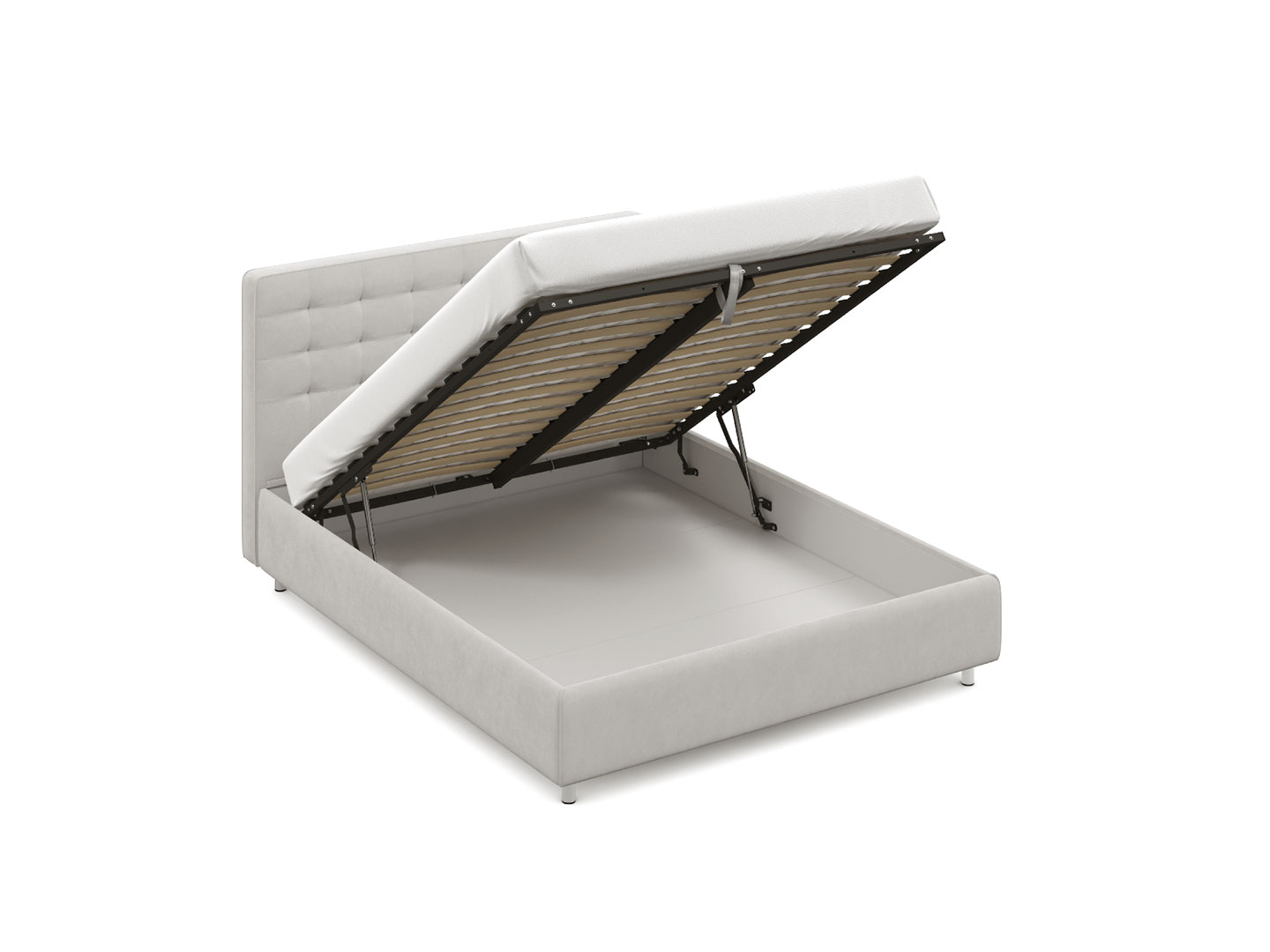 Вместительная емкость под кроватью без внутренних перегородок позволяет использовать для хранения вещей 100% пространства.