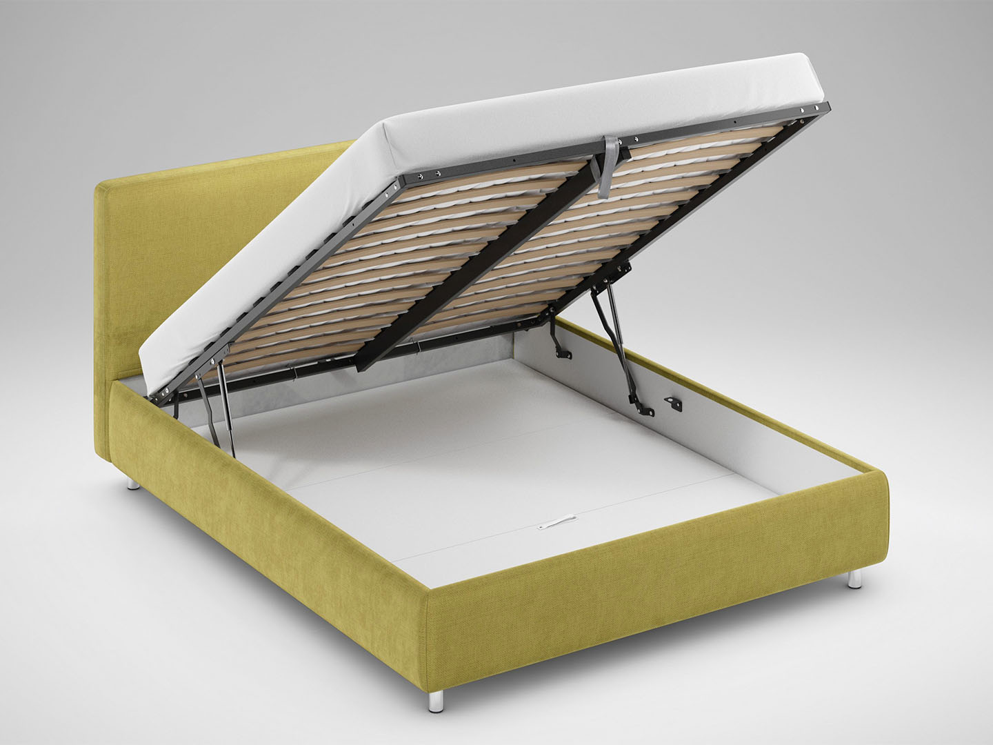 Вместительная емкость под кроватью без внутренних перегородок позволяет использовать для хранения вещей 100% пространства.