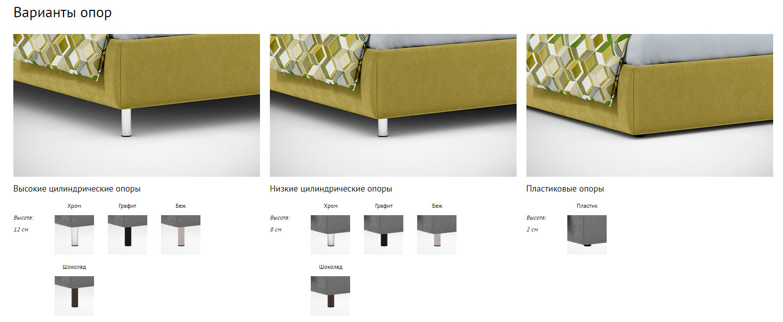 Цилиндрические опоры представлены в четырех цветах: Графит, Хром, Беж и Шоколад.
