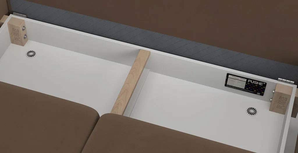 - два ящика для белья: увеличенное пространство для хранения спальных принадлежностей, зимних вещей или игрушек для детей;