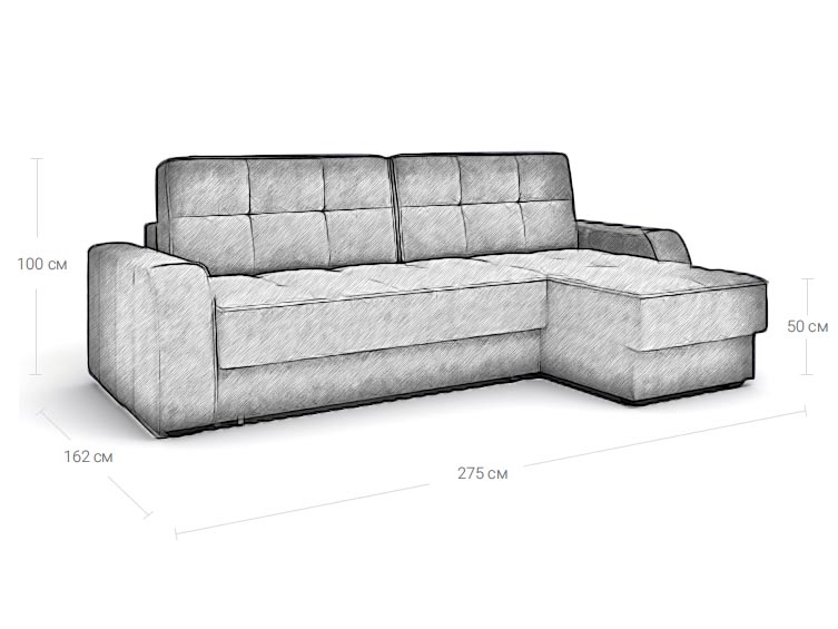 Универсальный угол: расположение оттоманки слева / справа. Можно менять без привлечения специалиста.