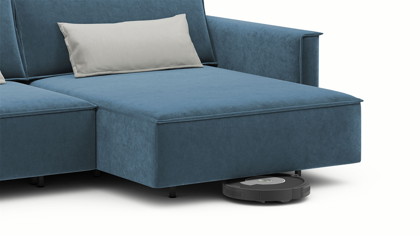 Благодаря высоким линейным опорам с эффектом «парения» под диваном проходит робот-пылесос и легко проводится влажная уборка, что обеспечивает чистоту и порядок в доме.