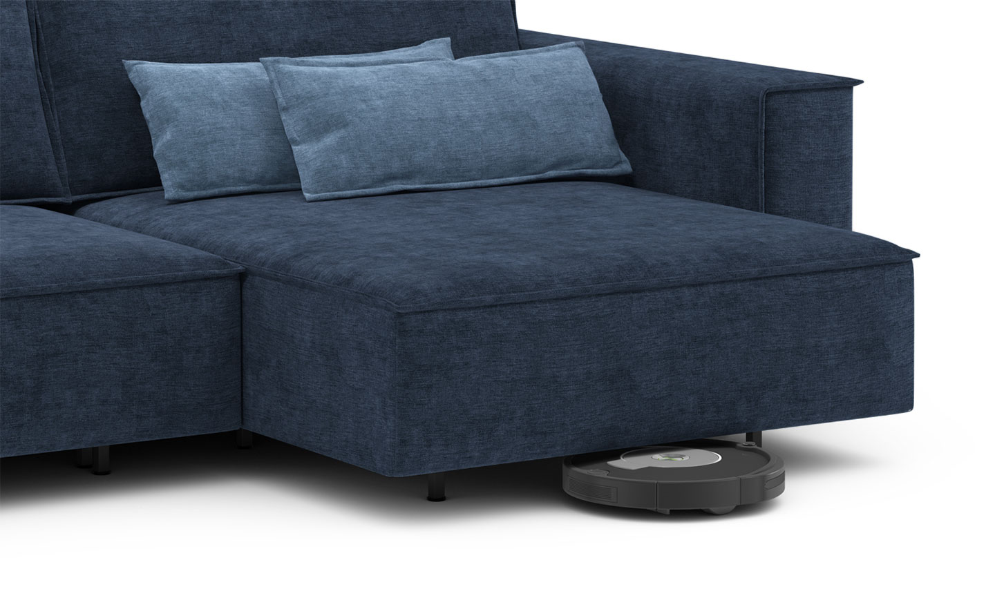 Благодаря высоким линейным опорам с эффектом «парения» под диваном проходит робот-пылесос и легко проводится влажная уборка, что обеспечивает чистоту и порядок в доме.