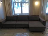 Спинка, выполненная в обивочной ткани, позволяет ставить диван в центре комнаты и зонировать пространство.