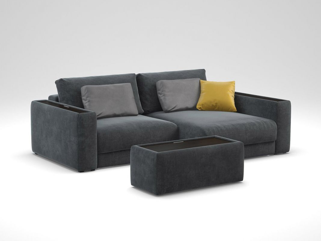 Многомодульный проект позволяет создавать уникальную комбинацию за счет различных модульных элементов, подчеркивая индивидуальность интерьера. Благодаря трансформируемым модулям, диван превращается в мягкий подиум для отдыха, к которому можно подойти с разных сторон. Два варианта подлокотников наделяют диван дополнительной функциональностью. Мягкие подлокотники — это тренд, сохраняющий единство образа. Подлокотники с нишей для хранения позволяют держать полезные мелочи под рукой, а на столешницу всегда можно положить телефон и поставить чашечку чая.
