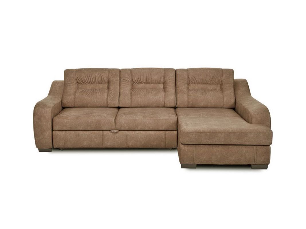 В основании сиденья — пружины «змейка» и эластичные мебельные ремни. Настил из многослойного высокоэластичного пенополиуретана, латексированного полотна и синтепона. Комфортное односпальное место можно получить даже при неполной трансформации дивана. Спинка, подлокотники и царга украшены рельефными швами и декоративными строчками, возможна отстрочка нитками контрастного цвета. Постельные принадлежности легко помещаются в объемный бельевой ящик. Декоративные опоры тонированы в цвета венге или ореха.