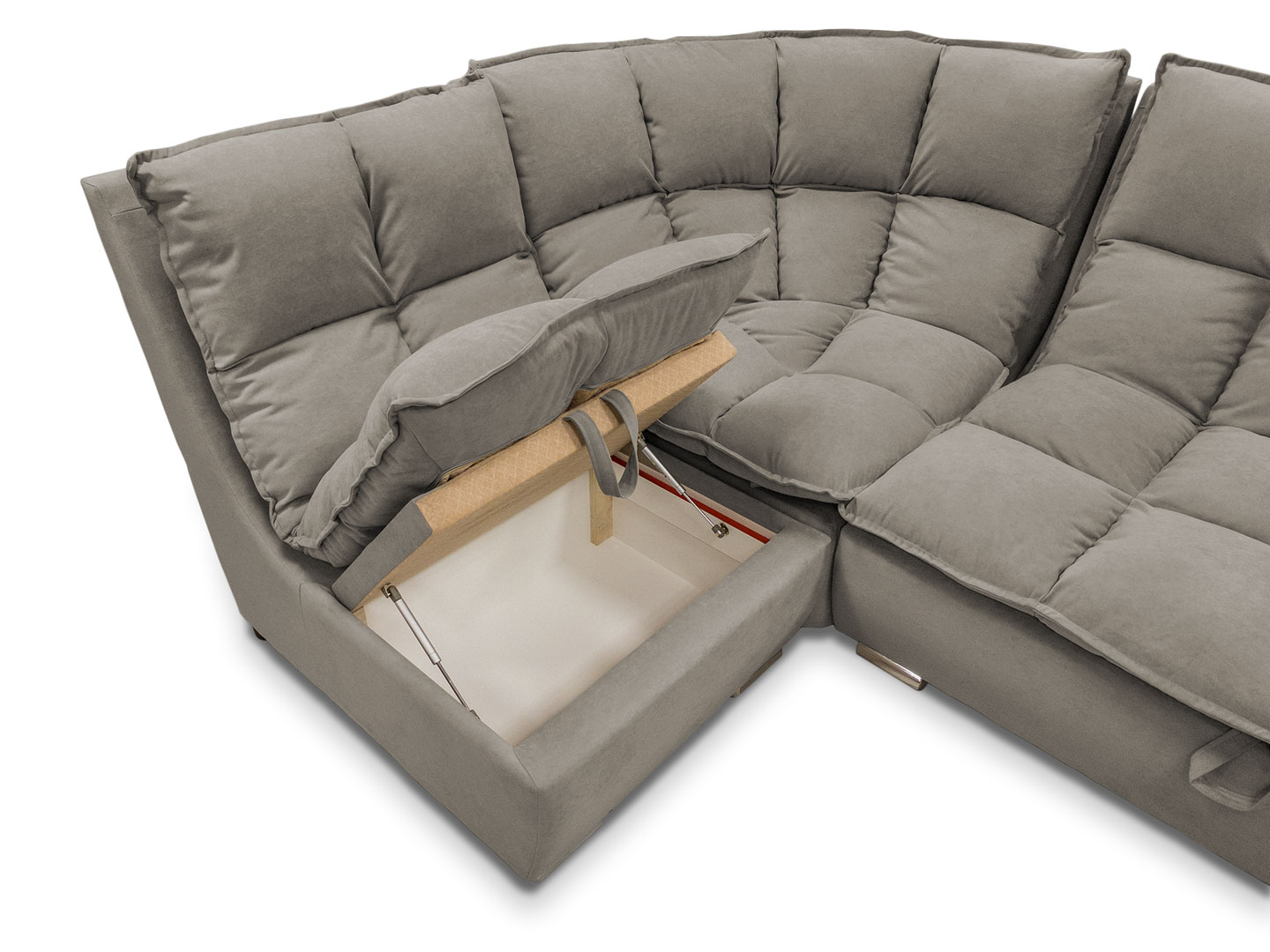 Надежный, долговечный, но простой в применении механизм трансформации пума подходит для использования на каждый день. Мобильность модулей "Доменики" позволяет преобразить пространство: каждый модуль возможно менять местами или разместить по разным комнатам в зависимости от Вашего желания и потребностей. Под кресельной секцией расположен бельевой короб из белого ЛДСП с вентиляционным отверстием.