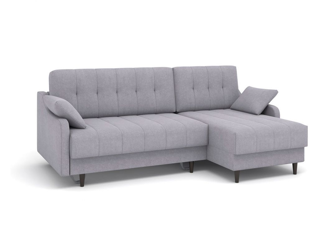 Угловой диван Женева яркий представитель популярного стиля mid century. Его отличают высокие тонкие опоры, удлинённые формы и четкие линии. Такой диван способен стать центральным элементом гармоничного и утонченного интерьера, не загромождая пространство и даря ощущение простора. Дополнительное преимущество - задняя спинка в основной ткани, что дает возможность размещать диван не только у стены, но и в любом месте помещения. Особую прочность дивану придает металлический каркас из конструкционной стали, а простой и надежный механизм трансформации - пантограф - обеспечивает долгий срок службы.